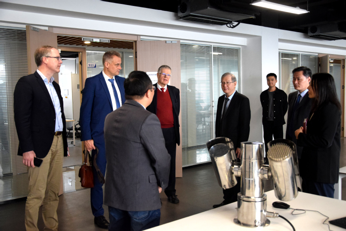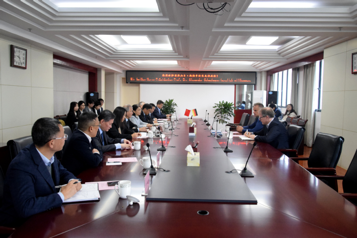 Wang Qidong begleitete Alexander Schmemann und sein Gefolge bei der Erkundung der Fakultät der Energie, Materialien und Chemical Engineering und das Volkswagen Institut.