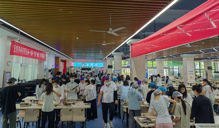 在学生处与后勤集团的联合组织下,“端午粽动员 巧手制安康”包粽子体验活动在第二学生食堂举行。食堂精心准备了粽叶、糯米、肉馅和蜜枣等材料,在师傅的悉心指导下,200多名学生踊跃参与,共包制了2000余个粽子。
