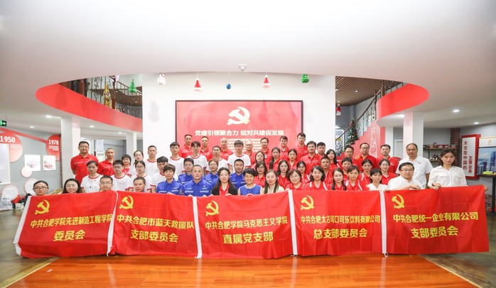 今年是中国共产党成立一百周年,也是“十四五”开局之年和全面建设社会主义现代化国家新征程开启之年。为深入学习党史,歌颂党的光辉历程,激励师生党员及企业员工坚定理想信念,凝聚磅礴力量。6月24日下午,合肥学院先进制造工程学院党委、马克思主义学院直属党支部与太古可口可乐公司总支委、合肥市蓝天救援队支委、统一企业有限公司支委联合开展了“党建引领聚合力,结对共建促发展”的主题党日活动。合肥学院先进制造工程学院党委书记杜娟、马克思主义学院院长胡艳萍,太古可口可乐公司党总支书记夏敏、人力资源总监贾真珍,蓝天救援队队长苏琴、支部书记刘晓东,统一企业有限公司工会主席阚冬芹、支部书记丁伟伟及五家单位的党员代表共50余人参加了本次活动。