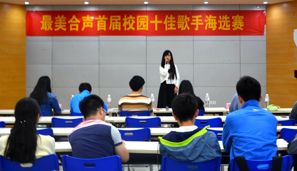 为丰富校园文化生活,营造积极向上、健康文明的校园文化氛围,提升我校学生综合素质,4月9、10日,我校最美合声首届校园十佳歌手大赛海选赛在大学生活动中心成功举行,校社团联合会、大学生艺术团、青年志愿者联合会、教育系艺术团负责人和第四届K歌之王获得者等出席并担任此次海选赛评委。