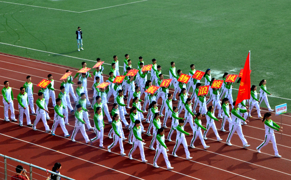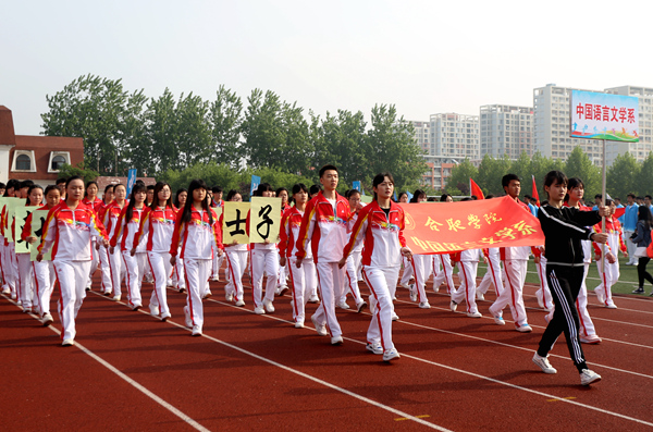 开幕式中,校方阵队、14个系部方阵队、留学生方阵队、研究生代表队和教职工方阵队依次走过主席台。方阵队伴着激扬的乐曲,昂首阔步,喊着振奋人心的口号,展现出我校师生勇往直前、积极向上的精神面貌。整齐的服装和独特的队形设计,展示出他们别样的风貌与精彩。