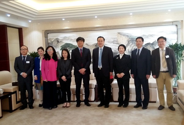 4月21日,韩国世宗学堂(世宗财团)考察团就我校与韩国济州汉拿大学合作共建的“合肥学院世宗学堂”到我校进行调研考察。校党委书记蔡敬民,副校长刘建中,国家友谊奖获得者、我校韩语教授赵诚惠夫妇,国际交流合作处处长贾峰、副处长张慧等在行政楼八楼贵宾室热情接待考察团一行。为准备本次调研考察,济州汉拿大学国际交流院院长申宜暻、语言教育中心主任朴宇、国际交流院行政科科长左京子一行来访我校,并参加了会见。
