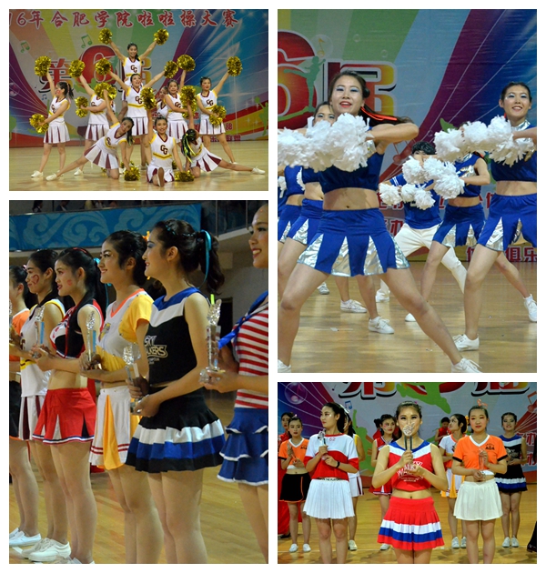 比赛前各系队员进场进行集中展示,火花啦啦队动感劲爆的舞蹈拉开比赛了序幕。第一轮是8-12人的小队展示环节,首先出场的是中国语言文学系“义勇军啦啦队”,身着蓝色服装,挥舞蓝色花球,以多变的队形,整齐划一的动作赢来了经久不息的掌声。伴随着firework的调子,旅游系的“风光啦啦队”出场,队员们随着节拍,弹跳着轻盈的脚步,动作优美。艺术设计系的“ICANIUP啦啦队”,串烧多首歌曲,身姿律动,动作优美。外国语言系的“微光啦啦队”身着红色队服,用轻快的步伐身姿诠释着青春的奔放。第二轮是12人以上的大队展示环节,教育系“星火啦啦队”用一字步、上举站立等高难度动作使得现场氛围达到高潮。建筑工程系的“筑魂啦啦队”别出心裁的造型设计和精彩的表演赢得阵阵掌声。紧接着,电子系的同学为观众带来一段孔雀独舞,轻盈的步伐,娇柔的身姿惊艳全场。最后,艺术系和教育系分别斩获本届“啦啦操大赛”小队展示和大队展示的冠军。(学生记者 潘红晨 徐景玲 周俊)