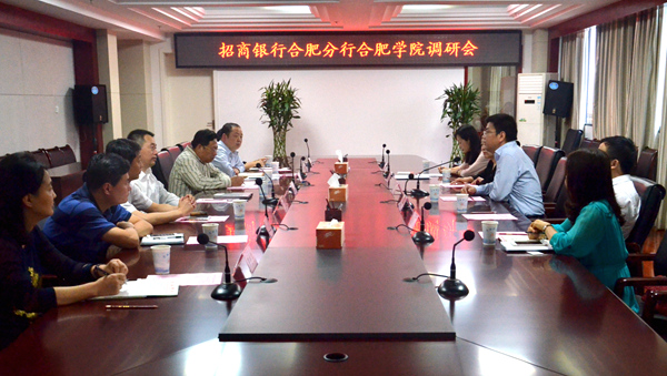 近期,招商银行合肥分行党委书记、行长洪波携同事一行五人来校进行调研。党委副书记、校长张文兵在行政楼接待来宾。财务处、党政办、学工部、发展规划处、计算机科学与技术系相关负责人陪同与会。