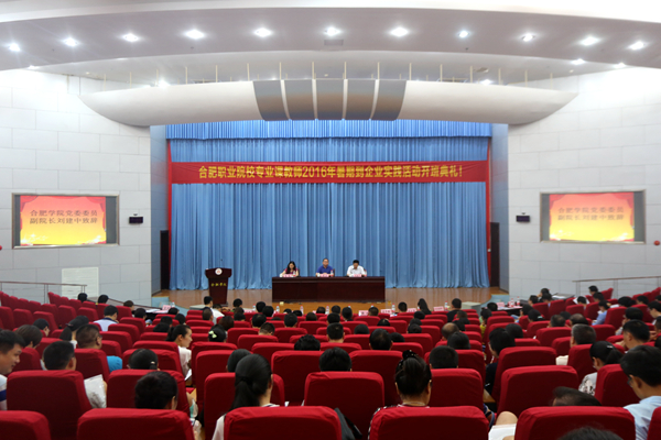 7月19日,我校图书馆报告厅隆重举行合肥职业院校专业课教师2016年暑期到企业实践活动开班典礼,合肥市教育局副局长唐文水、合肥学院副校长刘建中出席开幕式。合肥美菱股份有限公司、海尔集团合肥园区等11家实践企业负责人、以及来自27个学校的226名教师参加活动。开幕式由合肥学院合肥职业院校教师能力发展中心执行主任高艳主持。