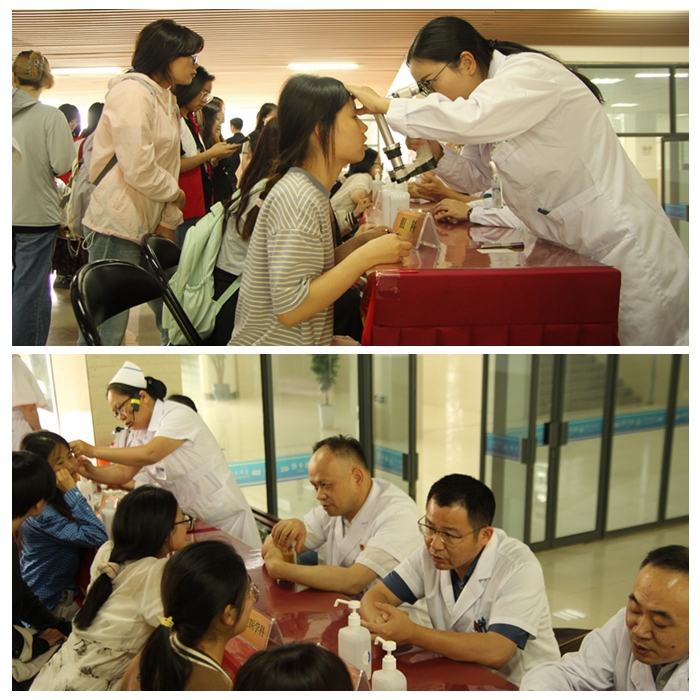 6月6日,学校在图书馆报告厅开展健康科普宣讲活动。合肥市第一人民医院滨湖院区执行院长潘爱红带领专家团队参加活动。脊椎骨科主任杜怡斌介绍了颈椎的结构以及颈椎病的成因、治疗方法和预防措施。心理咨询门诊护士长陈晓菊带领学生学习手指健身操,分享调节情绪的方法。急诊急救护士长刘荆科普心肺复苏急救知识,现场演示模拟心肺复苏的全过程。当天,图书馆一楼大厅还设置了眼科、脊柱骨科、关节骨科、中医科、心理咨询、康复科、消化内科等多个义诊点,为师生提供血压、血糖、视力等多方面的检查及咨询服务。