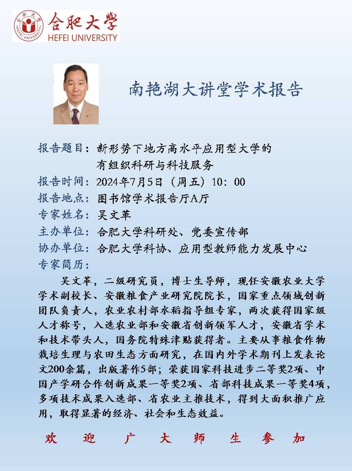 【南艳湖大讲堂】新形势下地方高水平应用型大学的有组织科研与科技服务